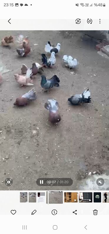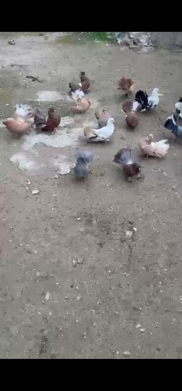 - Şəkillərdə müxtəlif rəng və naxışlarda (ağ, qara, boz, qəhvəyi, krem və qarışıq ləkəli) quyruğu yelpikvari açılan dekorativ göyərçinlər görünür.