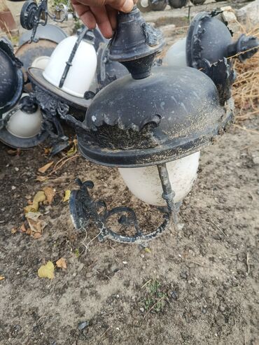 - Material: tökmə metal korpus, dekorativ oyma elementlər; kubok formalı mat şüşə plafonlar
