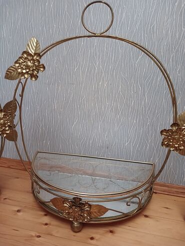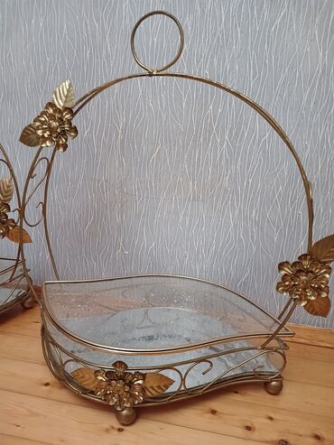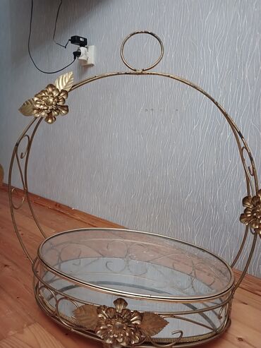 Metal-şüşə dekorativ səbət/stand - Material: qızılı rəngli metal