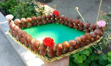 Fındıq və gül elementləri ilə bəzədilmiş bəzəkli mini dekor xonça.