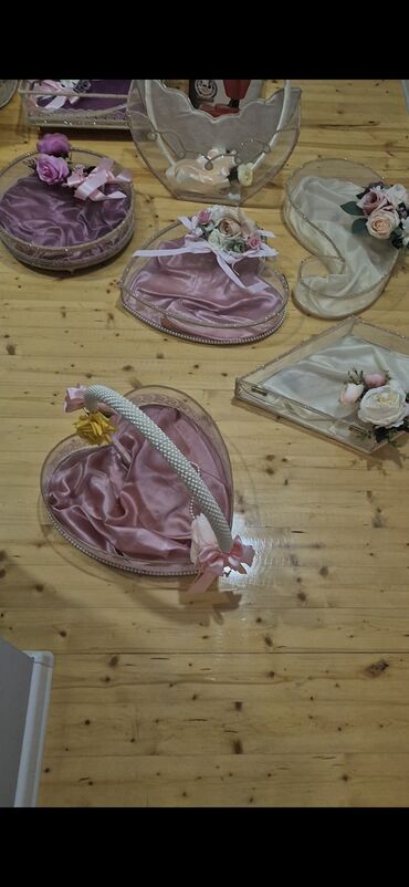 - Şəffaf akril materialdan hazırlanmış, müxtəlif formalarda xonçalar: ürək, dairəvi, kvadrat, yarpaq/s- formalı və çanta formalı model.