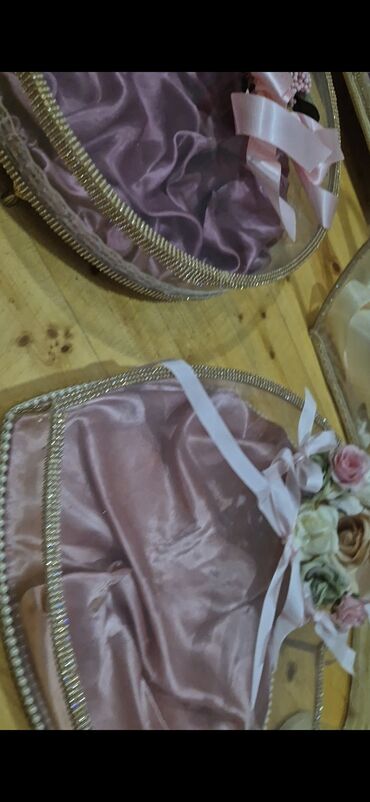 - İçliklər zərif atlas/parça ilə bəzədilib: pudra-çəhrayı və krem tonları.