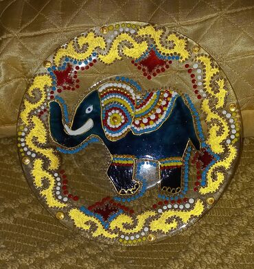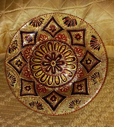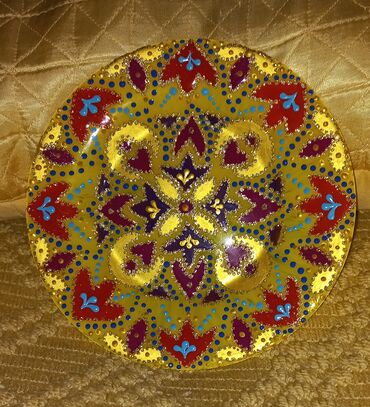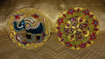 Əl işı: Şüşə dekorativ boşqablar . Biri 50 manatti . Diametor 19,5 sm .