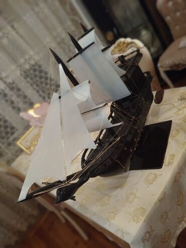 - Rəng: qara korpus, ağ yelkənlər, mis tonlarında iplər/halatlar.