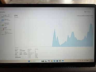 - İşləyən nümunədən görüntü: Task Manager CPU bölməsi (Intel Core i5‑1334U) göstərilir