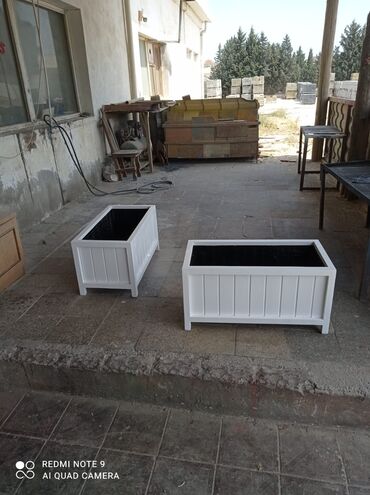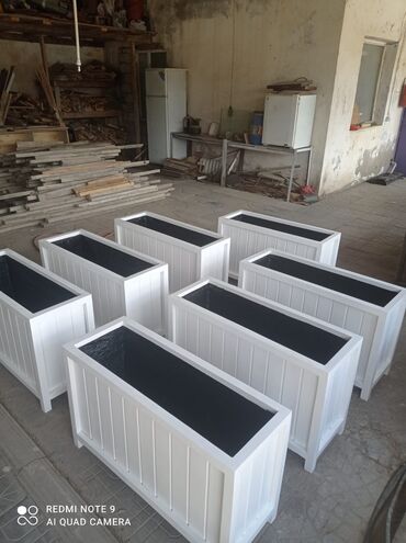 Açıq havaya uyğun dekorativ taxta gülbəçələr - Material: təbii ağacdan yığma konstruksiya, iç tərəfi suya davamlı örtük/plyonka ilə izolyasiya olunub. - Rənglər: qəhvəyi (ağac teksturalı), ağ, qar...