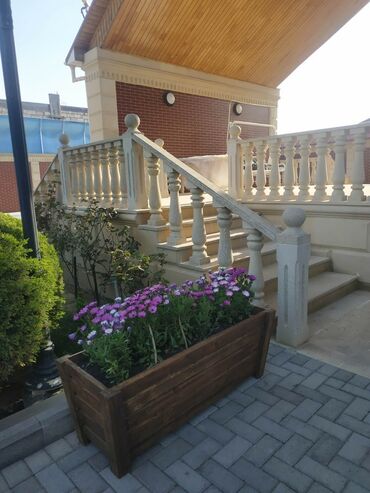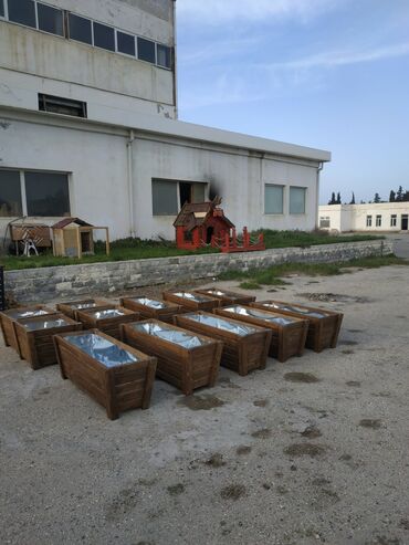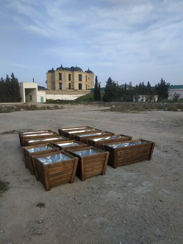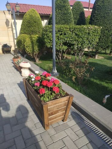 Açıq havaya uyğun dekorativ taxta gülbəçələr - Material: təbii ağacdan yığma konstruksiya, iç tərəfi suya davamlı örtük/plyonka ilə izolyasiya olunub. - Rənglər: qəhvəyi (ağac teksturalı), ağ, qar...