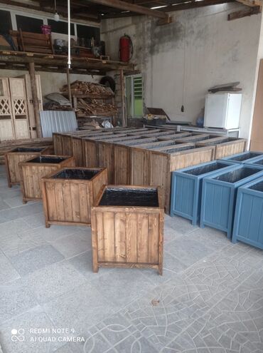 Açıq havaya uyğun dekorativ taxta gülbəçələr - Material: təbii ağacdan yığma konstruksiya, iç tərəfi suya davamlı örtük/plyonka ilə izolyasiya olunub. - Rənglər: qəhvəyi (ağac teksturalı), ağ, qar...