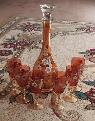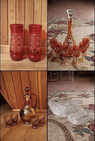 1 yaşıl güldan50₼, qrafin+6 bakal 100₼ Şəffaf bagema qrqfin+6 bakal 90₼