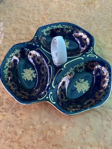 Hamısı təzədir. Qiymətdə endirim olacaq. Göy meyvə vazı və səbət hərəsindən 2 Ədəddir.Kobalt-mavi şüşədən dekorativ səbət. Qabın üstü qızılı naxışlarla bəzədilib, dalğalı ağız kənarı və bükülü qulp...