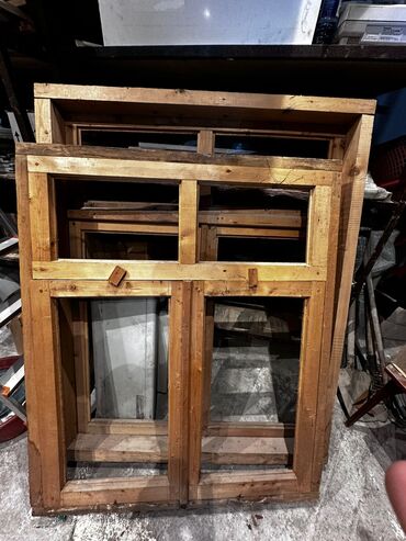 Taxta pəncərə bloku 5 ədəddir 1i 50 manat - Material: möhkəm taxta karkas - Konfiqurasiya: üç bölməli əsas çərçivə, yuxarıda dekorativ şüşəli transom hissə - Aşağı hissədə iki qanadlı pəncərə; sold...