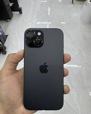 IPhone 15 (qara) - Rəng: Qara - Korpus: düz kənarlı alüminium çərçivə, şüşə arxa - Ekran: 6.1" Super Retina XDR OLED, Dynamic Island kəsiyi - Kameralar: arxada iki kamera bloku (Wide + Ultra Wide)...