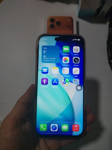 Apple iPhone (Pro seriyası) – açıq krem/qızılı rəngdə Yeniden secilmir ideal veziyyet telefon 2ci kimi islendiyi ucun hec praqramlar Whatsapp bele yuklenmeyib ancaq sekil cekilib.. Telefonun rengi...