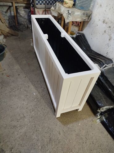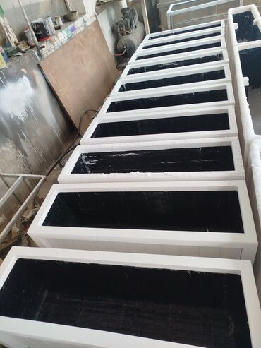 Dekorativ beton çiçək qabı – uzun düzbucaqlı forma - Material: armaturla möhkəmləndirilmiş beton - Üst örtük: əl işləməsi teksturalı, qara-boz “daş/terrazzzo” effektli dekor - Ölçü tipi: uzun, düz...