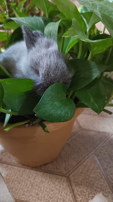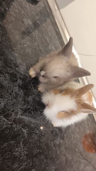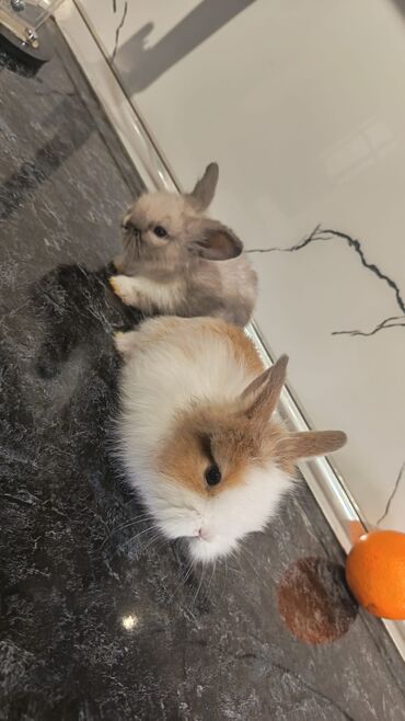 Ağ rəngli, qara qulaq ucları və göz ətrafında tünd ləkələri olan dekorativ dovşanlar. Fotolarda bir neçə bala və ana dovşan görünür. Xüsusiyyətlər: - Kompakt bədən quruluşu, dik uzun qulaqlar - Yum...
