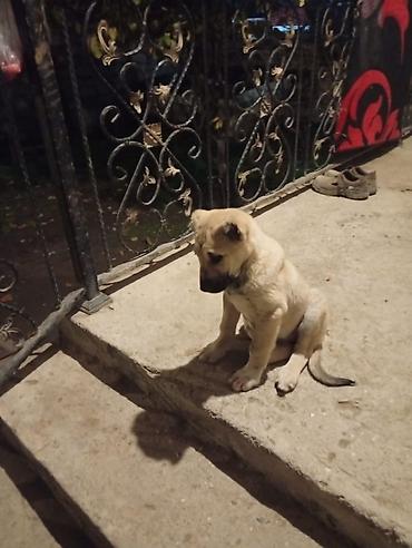 İtaətli və ağıllı balaca it - Cins: qarışıq (orta ölçülü olacaq) - Rəng: krem-qəhvəyi ağ naxışlarla - Yaş: balaca - Akssesuar: mavi yaxalıq və metal asma - Quşaqlı, dik qulaqlar; mehriban baxışlı,...