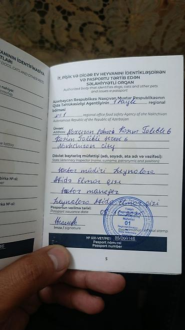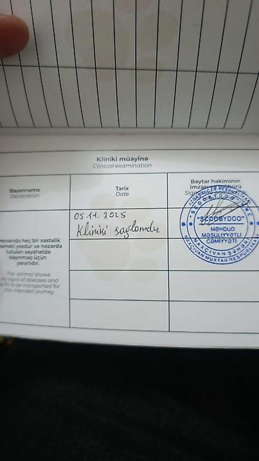 - Azərbaycan Respublikasının Heyvan Pasportu var (şəkildə göstərilib)