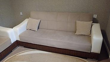 Salon dəsti – divan və 2 ədəd kreslo - Dizayn: bej rəngli oturacaq və