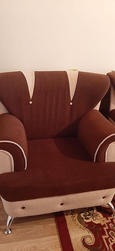 Divan və iki kreslo açılır hamısı baza var ünvan emircanQonaq otağı üçün 3 parçalı dəst: 1 üçnəfərlik divan + 2 tək nəfərlik kreslo. - Rəng: bej oturacaq/söykənəcək hissələri, tünd qəhvəyi baza və...