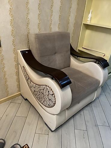 - Kreslo: geniş oturacaq, qalın süngərli arxa hissə, hər iki yanda taxta qol dayağı; yan hissələrdə naxışlı dekor paneli
