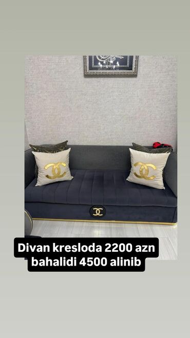 2 ədəd divan və 2 ədəd kreslo mövcuddur. Ölçüləri aşağıdakı kimidir. Divan: Kiçik - 170x60x90 - 90 AZN Böyük - 220x60x90 - 120 AZN Kreslo - 100x60x80 - 50 AZN