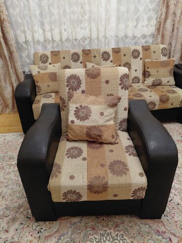 - Komplekt: Ümumi 3 parça oturma dəsti (1 böyük divan, 2 kreslo). Şəkillərdə görüldüyü kimi müxtəlif ölçülü dekor yastıqları ilə birlikdə.