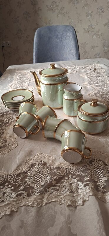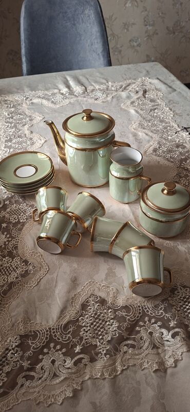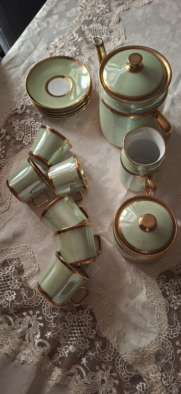 Kofe dəsti qədimi.yeni kimidir.çaşkanın birində kiçik qopma var.lakı