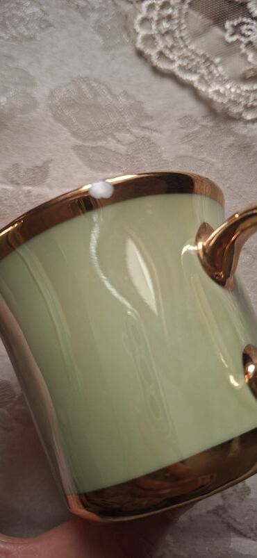 Kofe dəsti qədimi.yeni kimidir.çaşkanın birində kiçik qopma var.lakı qopub balaca.zər hissəsində.
