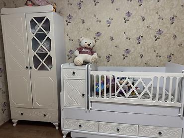 Kolleksiya “Aziz bebe” naxışlı barmaqlıq dizaynı ilə harmonik görünüşə malikdir, eyni üslubda şkaf və beşik-komod bir-birini tamamlayır. Uşaq otağında zərif klassik estetika və geniş saxlama həlli axtaranlar üçün uyğundur.