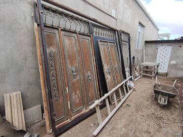 Dekorativ metal darvazalar və giriş qapıları - Material: metaldan hazırlanmış, dekorativ relyef və qızılı ornamentlər, rəngli panellərlə kombinasiya olunmuş dizayn - Komplektlər: 1) İkiqanad dar...