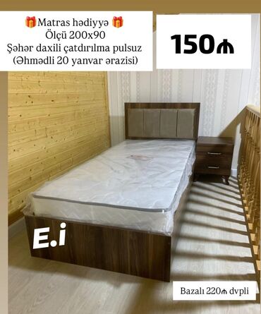 Yeni, Təknəfərlik çarpayı, Bazalı, Matras ilə, Siyirməsiz