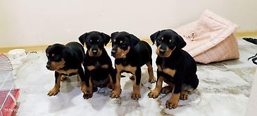 Rottweiler cinsi olan 1,5 aylıq olan küçüklər satıram. Qiyməti 400 azn Erkək və dişi var.