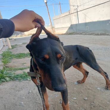Doberman Pinscher cinsli it 2 eded biri diwi biri erkek cut wekilde satilir 600 azn tek tek isdeyen olarsa 300-300 - Rəng: qara-qəhvəyi (tan işarələr) - Qulaqlar dik, atletik və çevik bədən q...