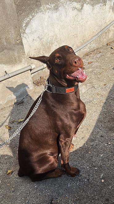 Doberman Pinscher, qəhvəyi-qara rəngdə, erkək it. Xüsusiyyətlər: - Atletik, çevik və enerjili bədən quruluşu - Ayaq üstə dik, iti qulaqlar və güclü sinə - Ayıq-sayıq, əraziyə nəzarət instinkti yük...