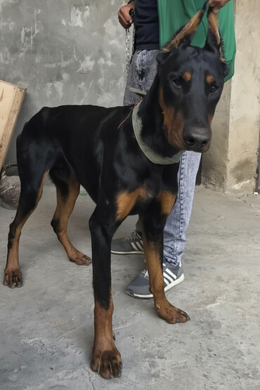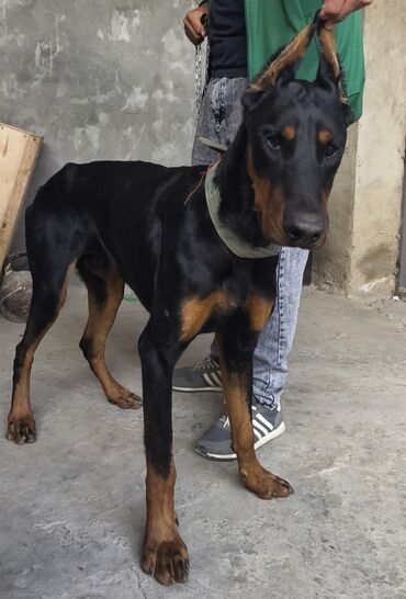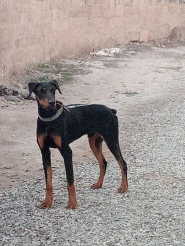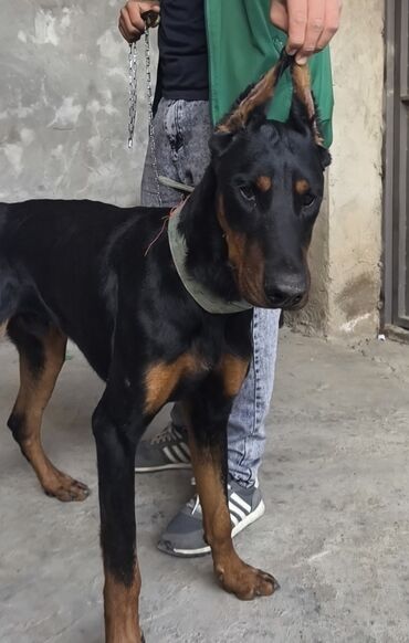 Doberman Pinscher – qara-qəhvəyi rəng palitrası, dik qulaqlar, qısa quyruq. Atletik bədən quruluşu, qiymet razilasma yolu ile ciddi alicilar narahat etsin 8 ayliqdir erkeydir.