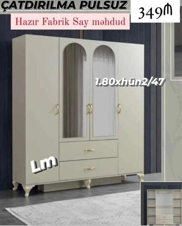 *_DOLAB_* *4 qapılı* _*FABRİK İSTEHSALI*_ Qiymət : *349₼* Ölçü: Mebellərimiz yeni,upakovkada,və 100%keyfiyyətlidir. *SEX MALI DEYİL❌* *Çatdırılma+quraşdırılma şəhər daxili pulsuz💃*_&LM