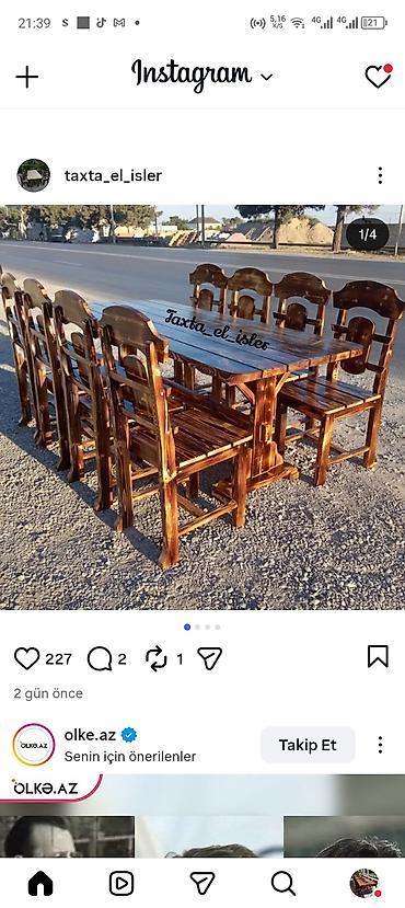 - Üslub: rustik/kənd üslubu, taxtanın təbii naxışı vurğulanıb.