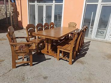 - Dəst tərkibi: 1 böyük düzbucaqlı masa, 10 stul + 2 qoltuqlu kreslo (cəmi 12 oturacaq yeri).