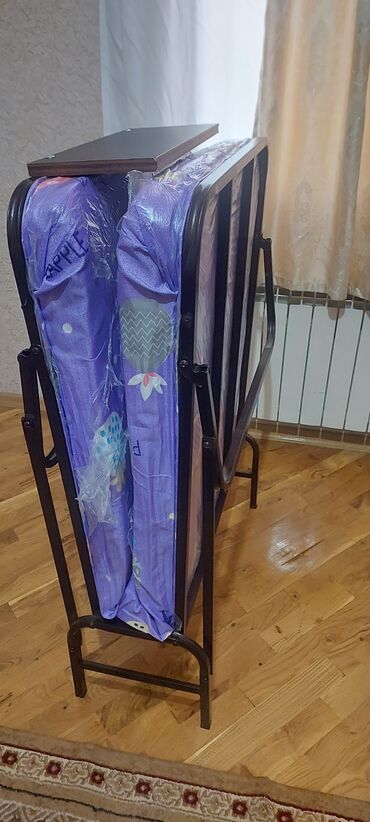 Yığılabilən dəmir çarpayı – matrassla - Çərçivə: möhkəm metal konstruksiya, qatlanan mexanizm - Matrass: çiçək naxışlı parça üzlüklü, qatlanan çarpayı ilə inteqrə - Ölçü: bir nəfərlik (standart si...