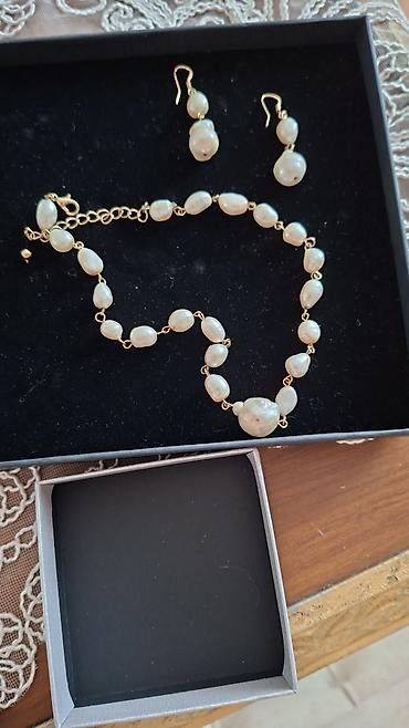 - Material: düzensiz formalı təbii ağ mirvarilər, qızılı rəngli metal aralıq halqalar və qulplar