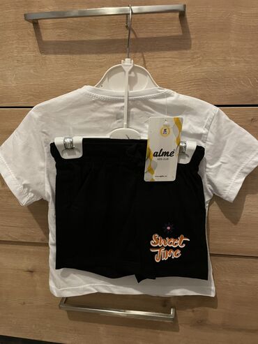 Uşaq üçün iki hissəli dəst - Ölçü: 9M (təxminən 9 aylıq) - Rəng/naxış: Açıq çəhrayı və ağ zolaqlar - Komplekt: Qolsuz kofta + şort - Dizayn: Asimmetrik ön büzgülü (volanlı) kofta, ətək hissəsində ...