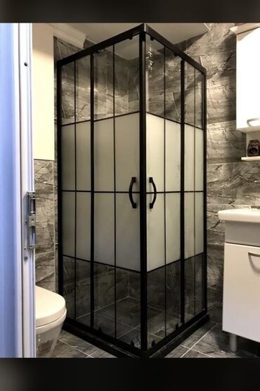 - Şüşə duş kabinləri: Künc yerləşimli, sürüşkən və açılan qapılı modellər. Mat və şəffaf zolaqlı temperli şüşə panellər, paslanmayan metal/profil karkas. Qara profilli “loft” dizaynı və xrom profilli variantlar mövcuddur. Praktik daxili drenaj xətləri və minimalistik tutacaqlar. Kiçik və orta ölçülü sanitar qovşaqlar üçün uyğun kvadrat və beşguşəli (pentagon) formalar.