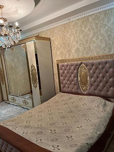 - 2 nəfərlik çarpayı – başlığı kapitonlu (yumşaq toxumalı), ortasında qızılı dekor paneli, taxta karkas.