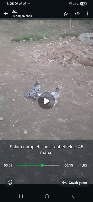 Məhsul: salam 2 oyun quşu 5 ədəd uçan quş 3saat yarım uçan quşlardı cəmi 7 ədəd quşdur qiymət 30 manat Ev göyərçinləri (kolleksiya və damazlıq üçün) Təsvir: - Fərqli rəng və naxışlarda ev göyərçi...
