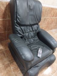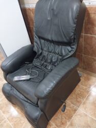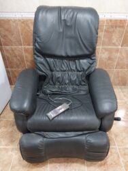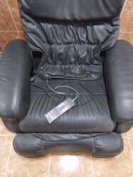 Qara rəngdə, yumşaq süni dəridən elektrik masaj kreslosu.