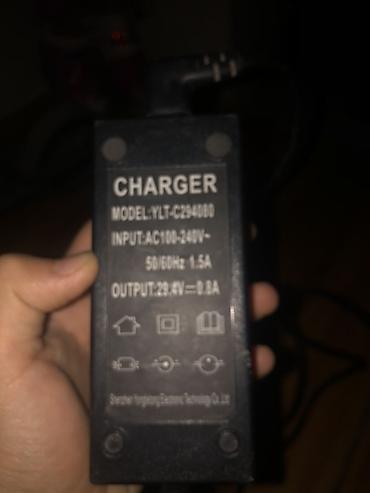 - Komlektdə şarj cihazı: Model YLT-C284880, giriş AC 100–240 V, 50/60Hz 1.5 A; çıxış 29.4 V – 0.8 A.