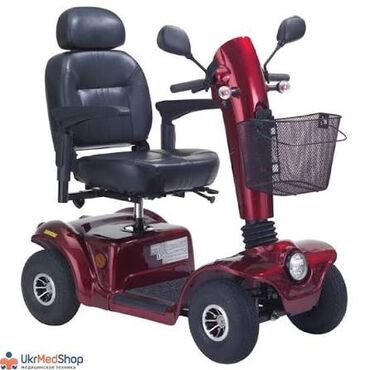 - Elektrikli dörd təkərli skuter: ön fara, arxa güzgülər, sükan üzərində idarəetmə, ayaq qoyacaq, geniş yastıqlı oturacaq, tənzimlənən bel və baş dayağı, qol dayaq, ön metal səbət. Stabil şassi və iri təkərlər sayəsində həm iç, həm də çöl mühitində rahat sürüş təmin edir.