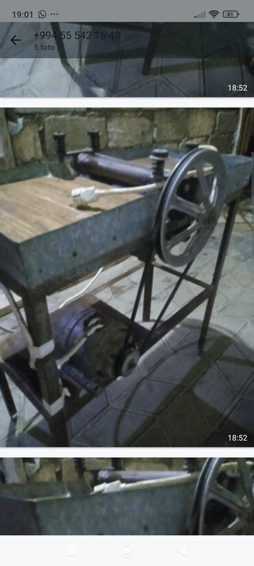 Qeyd: Şəkillərdə görünən bütün hissələr komplektdədir (mühərrik, kasnak-kəmər sistemi, rulonlar, stend, elektrik açarı).