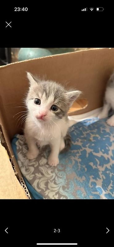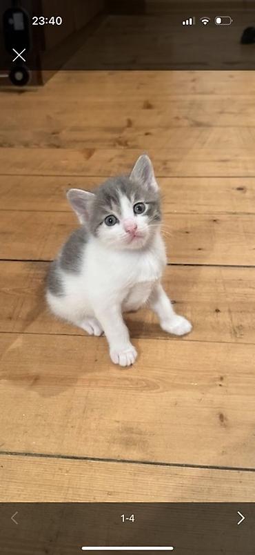 Məhsul: Pişik balaları Təsvir: - Şirin pişik balaları, ev şəraitində böyüyür. - Rəng və görünüş: - Boz tüklü, qarın və pəncələrində açıq zolaqlar olan balaca. - Tam ağ tüklü, başında çox açıq ləkə...
