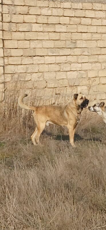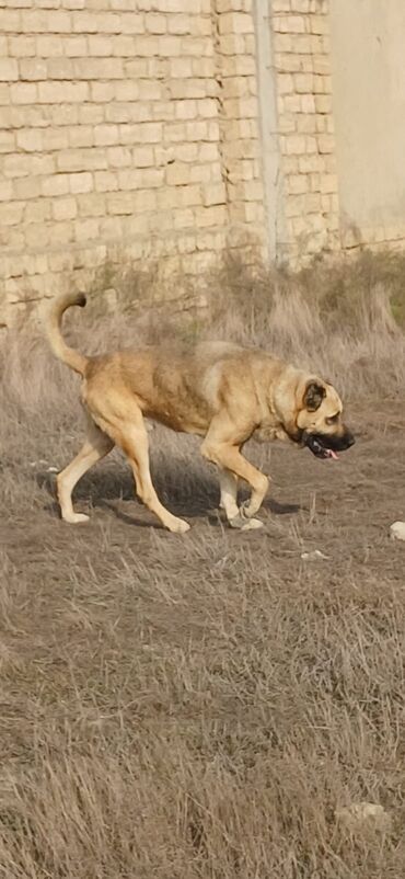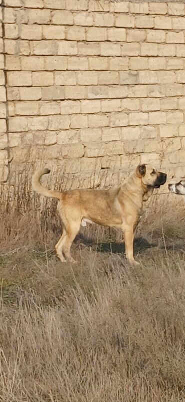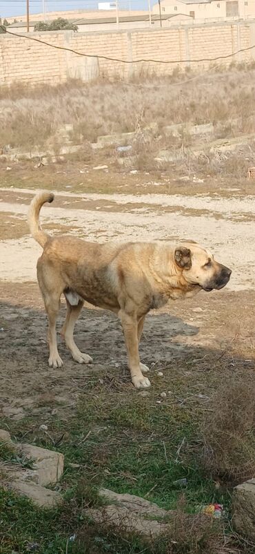 Kangal tipli böyük cins it - Cins: Kangal/Anadolu çoban iti tipli - Cinsiyyət: erkək - Rəng: qumlu-krem kürk, ağız və maskada tünd boz-qara çalarlar, ağ pəncələr - Boyut: iri, güclü skeletli və uz...